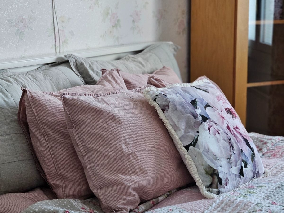 Tukevat sängyt ja laadukkaat patjat kuuluvat huoneistomme varustelutasoon. Peittoja on useampia erilaisia, joista kesällä on käytössä viileämmät vaihtoehdot ja talvella paksummat, muhkeat talvipeitot. Lisäksi on tarjolla lisävilttejä ja villasukkia sekä useita pieniä koristetyynyjä, joilla varmistaa mukava oloasento vaikkapa napakassa sohvassa televisioiltaa varten.