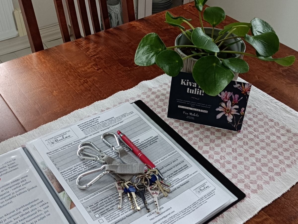 Majoittujia varten olemme sarjoittaneet omat avaimet, joilla ei pääse muualle taloon. Omistajan huoneistoon ette pääse, koska väliovi on salvattu molemmin puolin. Omistaja ei myöskään pääse teidän huoneistoonne sisäkautta, ainoastaan ulkokautta hätätapauksissa.