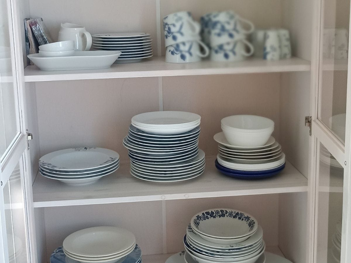 Keittiössä on hyvät ruoanlaittovälineet ja Suomi 100 -astiasto 8 henkilölle. Lisäksi on erilaisia laseja kuten shotti- ja viinilasit.