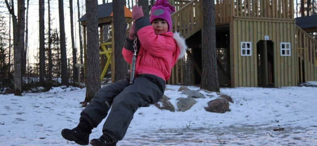 Monitoimihalli Kisalalla sijaitsevassa Metsäleikkipuistossa onnistuu ulkoilu talvellakin.